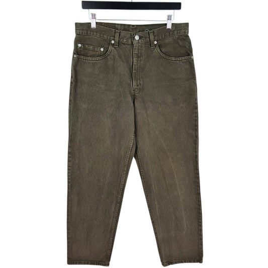 Vintage Levis 550 Jeans 90's Olive Green Loose Tapered USA Made Denim W32