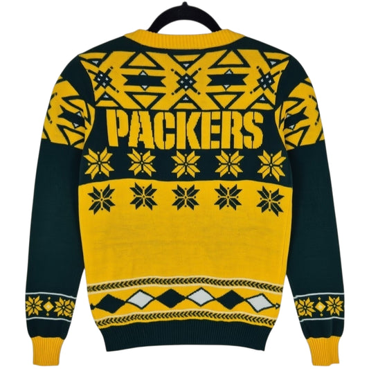 NFL Team Apparel Green Bay Packers Yellow V Neck Acrylic Knit Sweater Size S