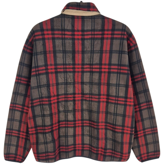Chaps Brown & Red Checkered Quarter Button Fleece Jumper Size M