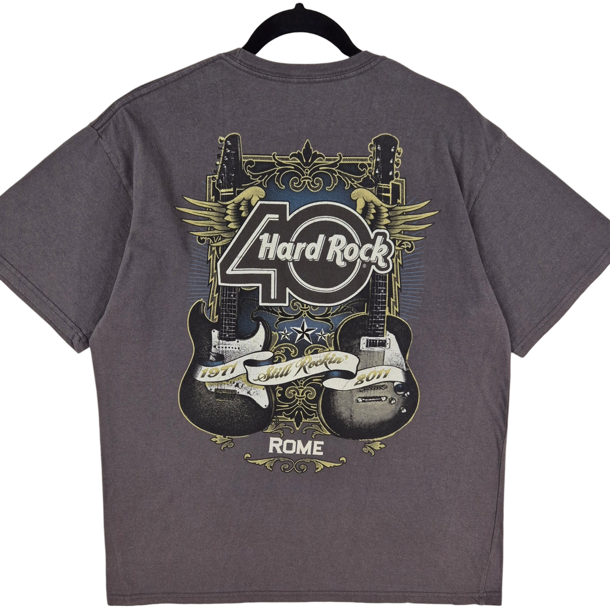 Hard Rock Cafe Rome Grey 40 Year Anniversary Cotton Tee Shirt Size L