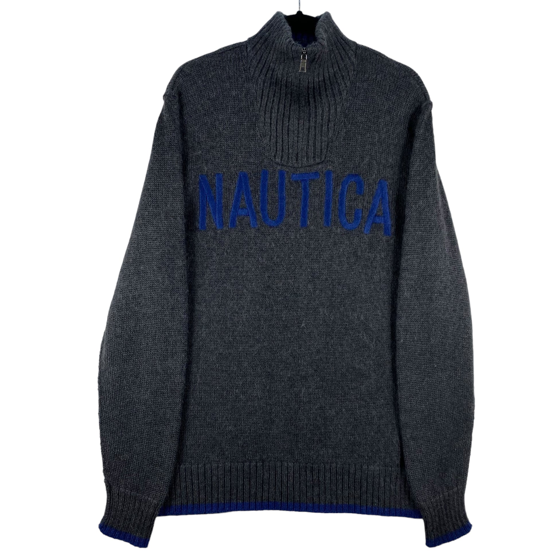 Nautica Dark Grey Wool Acrylic Quarter Zip Knit Sweater Size XL