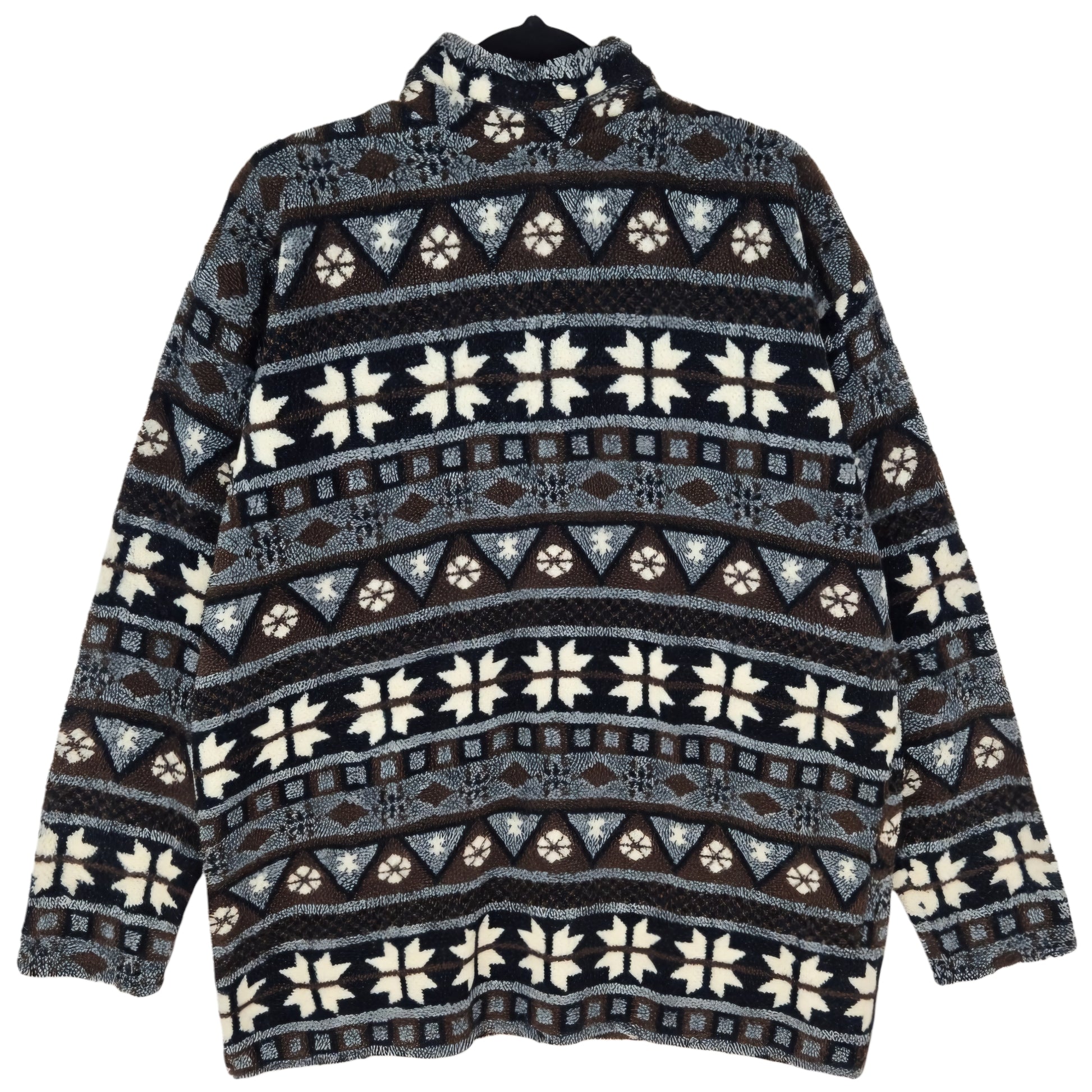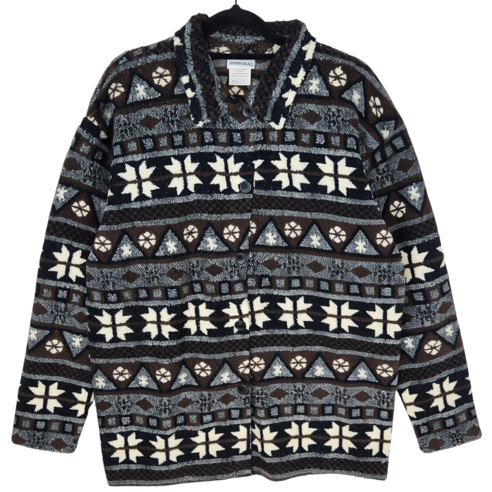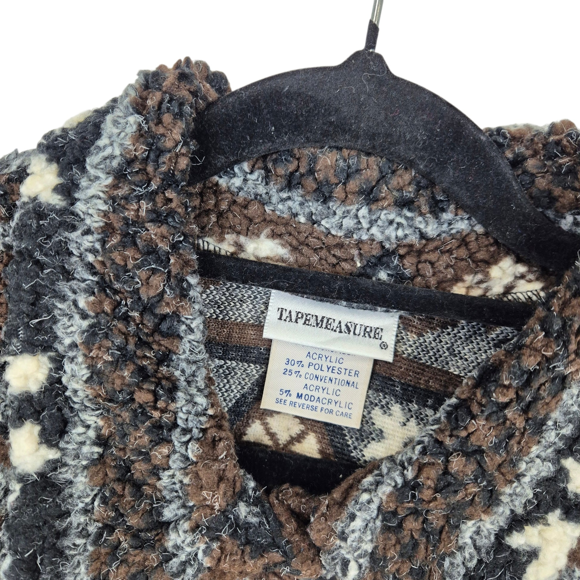 Vintage Tapemeasure 80's Black & Brown Fleece Button Jumper Size L