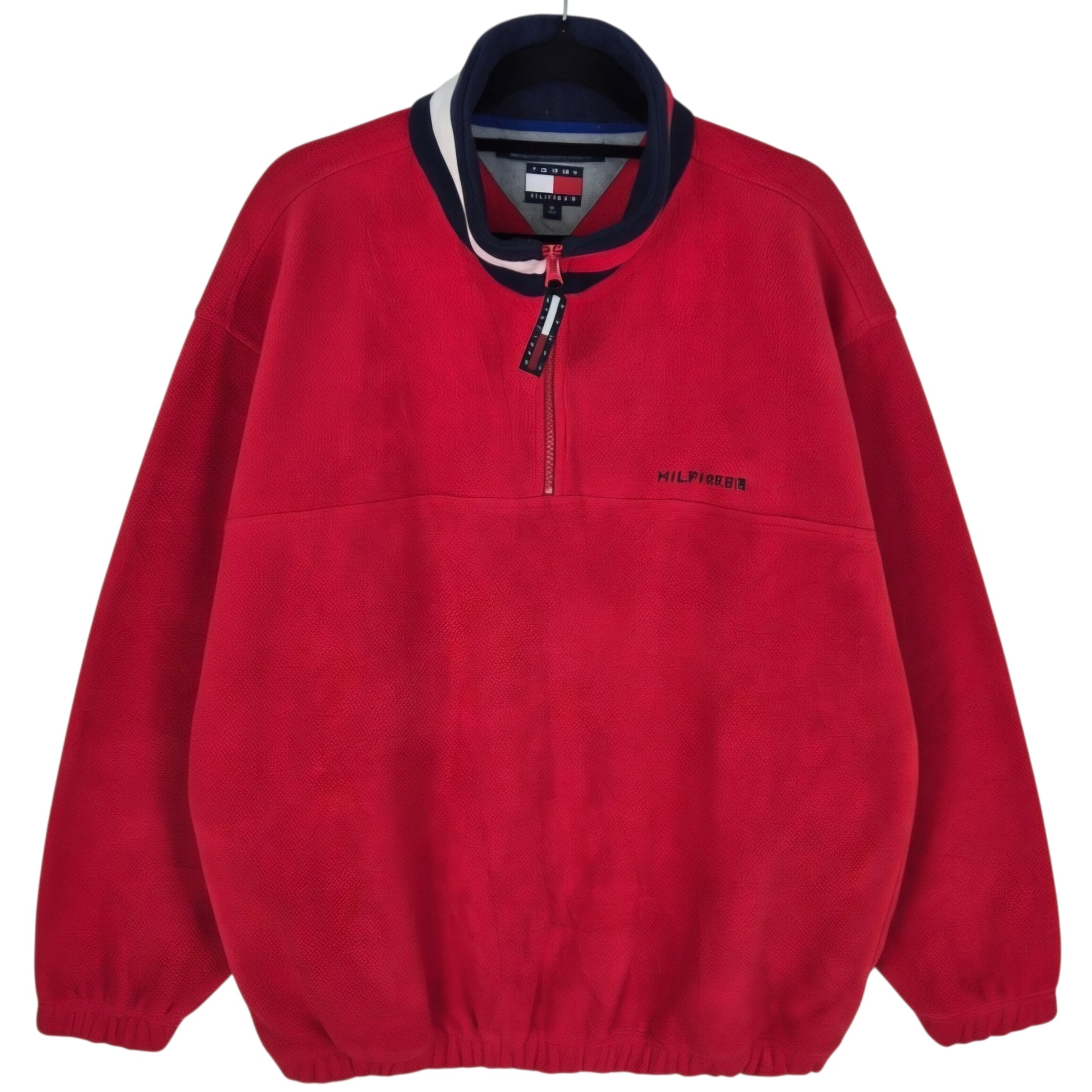 Vintage Tommy Hilfiger 90's Red Quarter Zip Fleece Jumper Size M